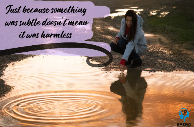And when you minimize that impact, it adds another layer of harm. “Being told to play something down that hurts you only adds to the harm that was done.” Not everything that’s harmful is loud. Some of it is subtle. Repeated.Wrapped in innocent language. And when you ignore those moments, you disconnect from your own lived experience.